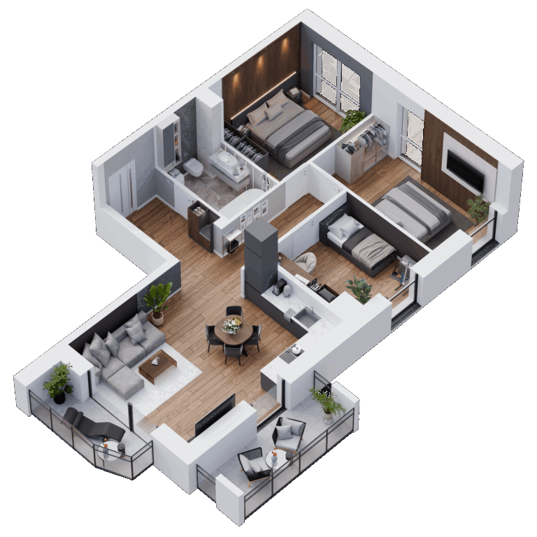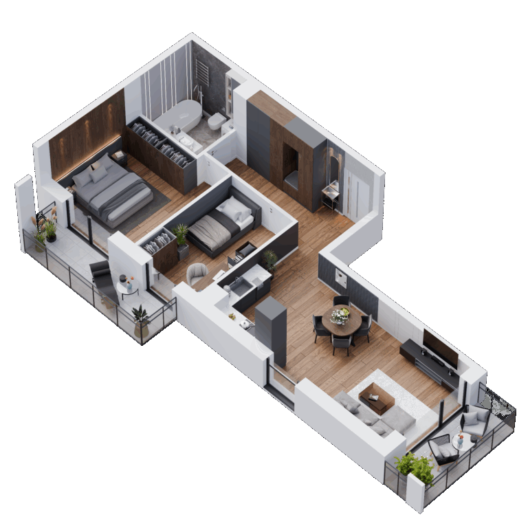 Wybieraj spośród 102 mieszkań o powierzchni od 29 m² do 88 m² – od przytulnych kawalerek po przestronne, rodzinne apartamenty. Układy zostały zaprojektowane tak, aby zapewnić maksymalną funkcjonalność, z możliwością indywidualnej aranżacji (w tym montażu klimatyzacji). Duże przeszklenia wpuszczają mnóstwo naturalnego światła, dzięki czemu wnętrza są jasne i przyjemne o każdej porze dnia. Możesz połączyć wybrane mieszkania lub dopasować układ ścian działowych do swoich potrzeb.