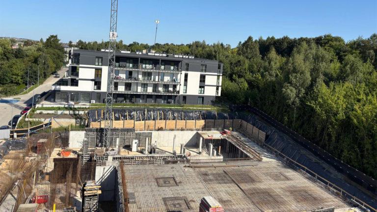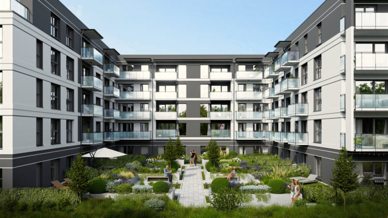 Osiedle Na Wzgórzu to nowoczesny kompleks mieszkaniowy, który łączy współczesną architekturę z wygodą codziennego życia. Elewacje i przemyślany układ budynków tworzą spójną, estetyczną całość. W centralnej części znajdziesz zielony dziedziniec, gdzie możesz odpocząć w otoczeniu roślinności. Dla najmłodszych dostępny jest bezpieczny plac zabaw, idealny do codziennej zabawy na świeżym powietrzu.