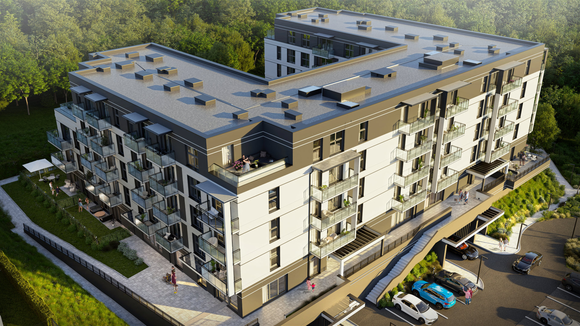 Lubisz popołudniową kawę pod chmurką? Tutaj możesz cieszyć się nią na własnym balkonie, tarasie lub w przydomowym ogródku. Każde mieszkanie oferuje dostęp do prywatnej przestrzeni zewnętrznej, dzięki czemu codzienność nabiera nowego wymiaru. A jeśli masz samochód, zaparkujesz bez problemu – do wyboru masz miejsca postojowe w garażu podziemnym i zewnętrzne naziemne lub z zadaszeniem.